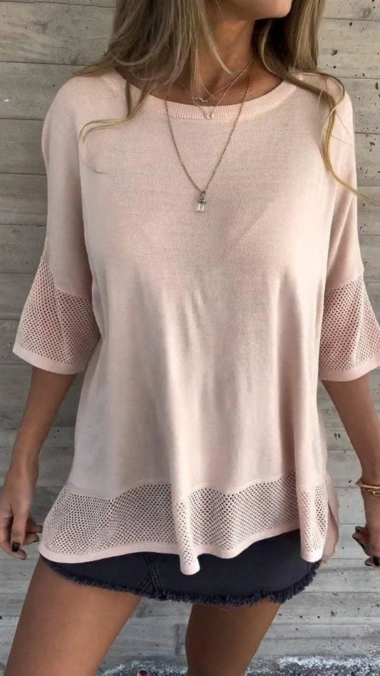 Ambra Merola™ Női rövid ujjú pulóver üreges mintával