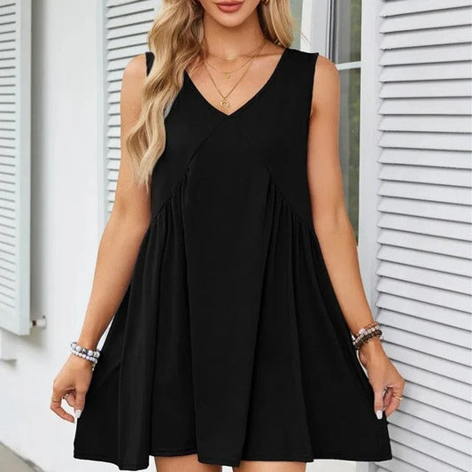 Monica Verno™ Női V-nyakú, ujjatlan mellény, bő, redőzött ruha