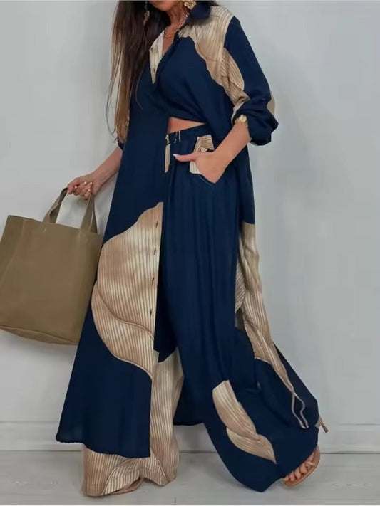 Susanna Perro™ V-nyakú Patchwork nyomott felső és nadrágkosztüm