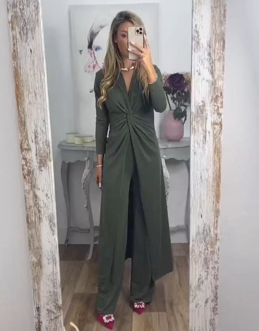 Ancilla Monti™ Divatos, kényelmes, V nyakú női jumpsuit