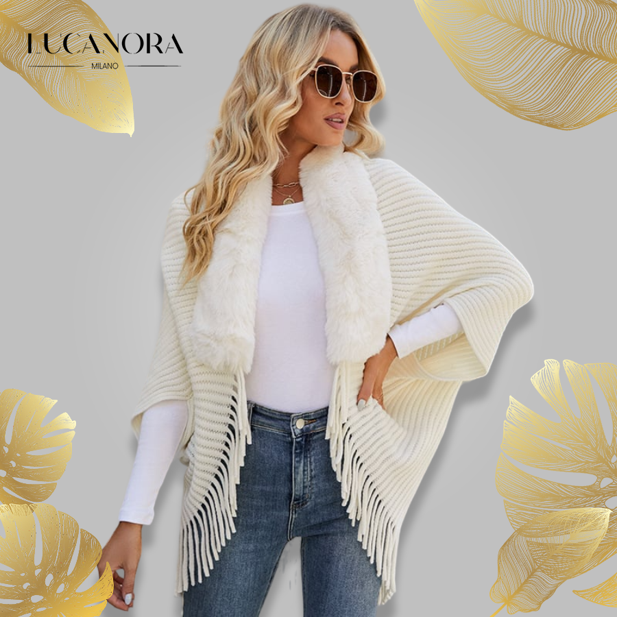 Alfonsa™️ Téli kötött poncsó bojtokkal és szőrme gallérral