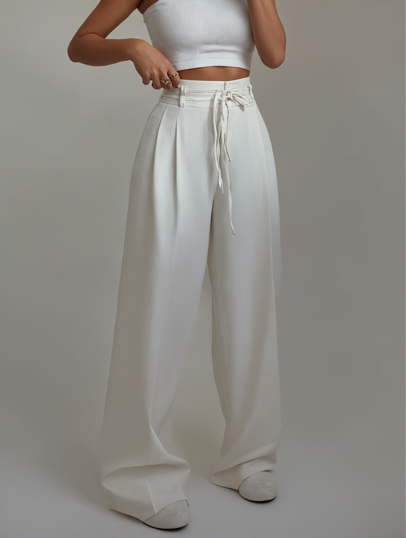 Puha, luxus érzetű anyagból készültek, így egész nap kényelmesen viselhetők, anélkül hogy az eleganciából bármit is fel kéne adnod. A magas derékrész szépen kiemeli a derekad, és egy előnyös, nőies sziluettet ad. A sokoldalú fazon miatt könnyedén kombinálhatod bármivel – legyen szó egy laza pólóról vagy egy elegáns blúzról –, így ez a nadrág gyorsan a gardróbod egyik kedvenc darabjává válik.