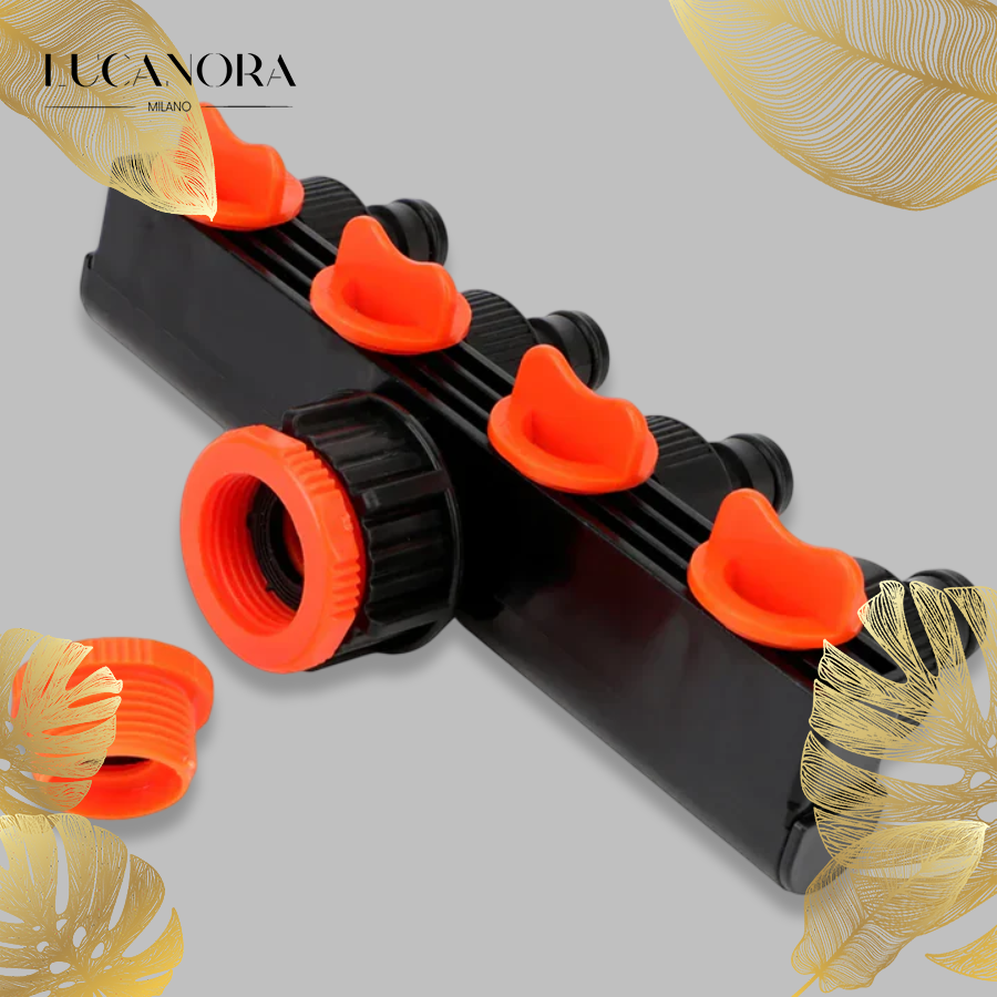 Ez a 4 utas elosztó testreszabható öntözést kínál egyedi szelepvezérléssel, lehetővé téve a precíz vízáramlást a kert minden részére. Sokoldalúsága ideálissá teszi különféle öntözési igényekhez, míg a szivárgásmentes kialakítás megakadályozza a vízpazarlást. Könnyen felszerelhető, közvetlenül a menetes tömlőkhöz vagy csapokhoz csatlakoztatható, így az öntözés hatékonyabb.