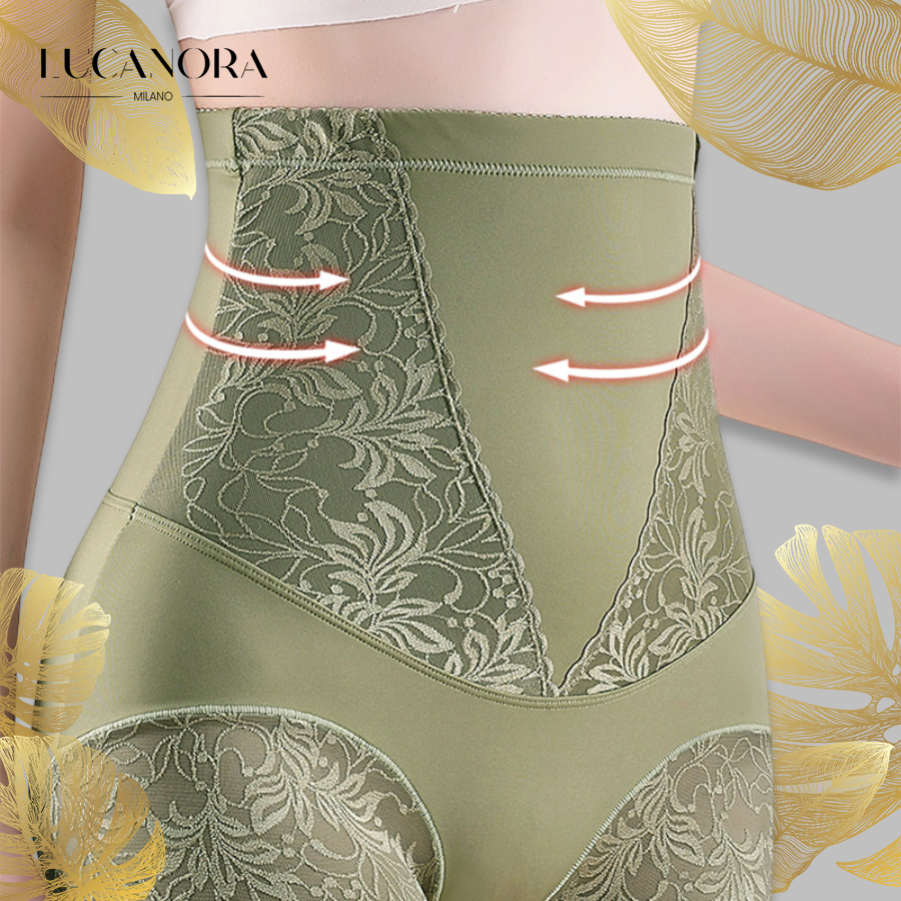A bugyi kiváló minőségű anyagból készült, és zökkenőmentes szabást kínál, amely olyan érzés, mint egy második bőr. A magas derekú kialakítás kiváló haskontrollt biztosít, és könnyedén kiemeli sziluetted. A finom csipkerészletek egy csipetnyi eleganciát adnak ennek a bugyinak, ami nem csak funkcionálissá, hanem gyönyörűen stílusossá is teszi.