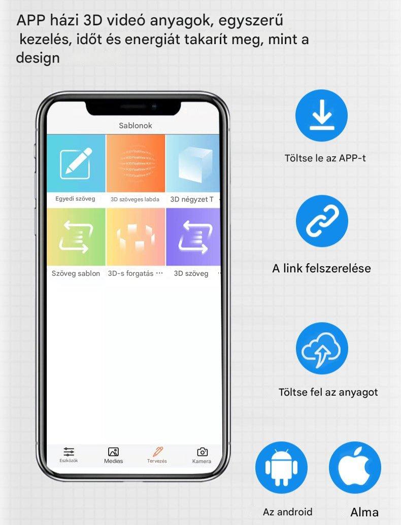 ✔ Felhasználóbarát: Könnyen beállítható és kezelhető, bárki azonnal elkezdhet lenyűgöző 3D effektusokat létrehozni.