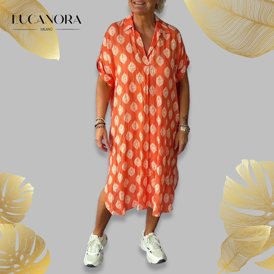 A lazán szabott gallérnak, a légies sziluettnak és a figyelemfelkeltő mintának köszönhetően ezekben a ruhákban úgy érezheted magad, mintha szellő lengene körül – szó szerint. Legyen szó kávézásról, brunchról vagy csak egy csinos és kényelmes viseletről, ez a ruha minden elvárásnak megfelel.