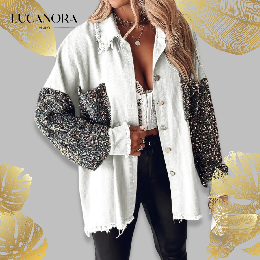 ✔ Tökéletes nappalra és estére: Ez a dzseki egész napos viseletre is alkalmas – viseld napközben ügyintézéshez, vagy öltözz fel vele estére. A csillogó flitterek gyönyörűen visszaverik a fényt, így minden fotón kitűnsz majd. Ez a te választásod, amivel minden tekintetet magadra vonzol, anélkül, hogy erőltetnéd.