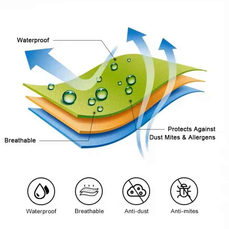 ✔ Teljes védelem: Víz- és porálló, megakadályozza a foltok kialakulását és meghosszabbítja a matrac élettartamát.