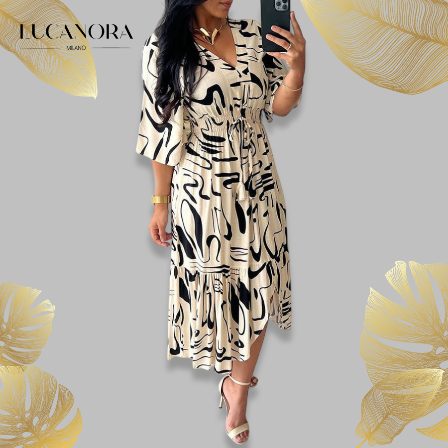 Ez a ruha kiemelkedik a különleges, tintával inspirált mintázatával, amely egyszerűen ötvözi az eleganciát egy kis fantáziával. Nemcsak vonzza a tekintetet, hanem kiemeli művészi tehetségedet is. A ruha kényelmes pamut és elasztán keverékből készült, így stílusosan nézhetsz ki anélkül, hogy feláldoznád a kényelmet.
